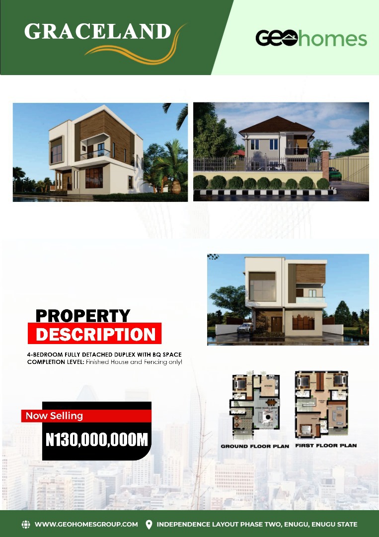 Luxury Living in Independence Layout Phase 2, Enugu – 4 Bedroom Detached Duplex with BQ Space.
